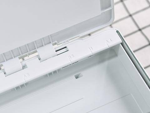 在重量方面仅为5.4Kg,即使在日常的使用中想要变更位置,那么搬运起来也是一件十分轻松的事情 简洁的设计风格 这款惠普M30w简洁的设计风格可以说深受年轻人的青睐,前面我们说过小巧的机身让惠普M30w十分讨喜。而就算在“工作”全开的状态下,惠普M30w的占地面积仍然值得一提。150页的进纸容量完全可以满足日常的打印需求,为了节省机身的空间进纸盒采用两段式折叠的展开方式,不使用时也可以将其完全折叠,这样简洁的设计正式年轻人的挚爱